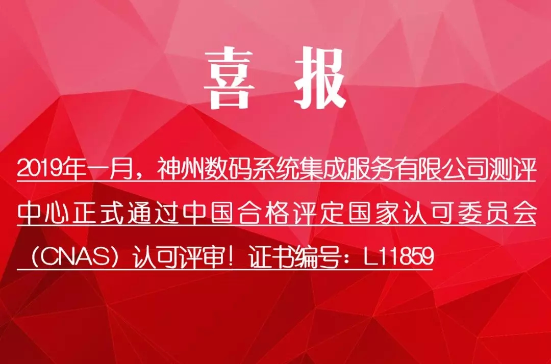 2019年1月,今年会系统集成服务有限公司软件测评中心(下简称测评中心)通过中国合格评定国家认可委员会(CNAS)的正式认可,标志着测评中心的检测设备、设施、管理和技术得到国家认可,在软件产品及信息安全产品检测方面达到国家一流水准,实验室数据将得到法律、政府的共同承认。